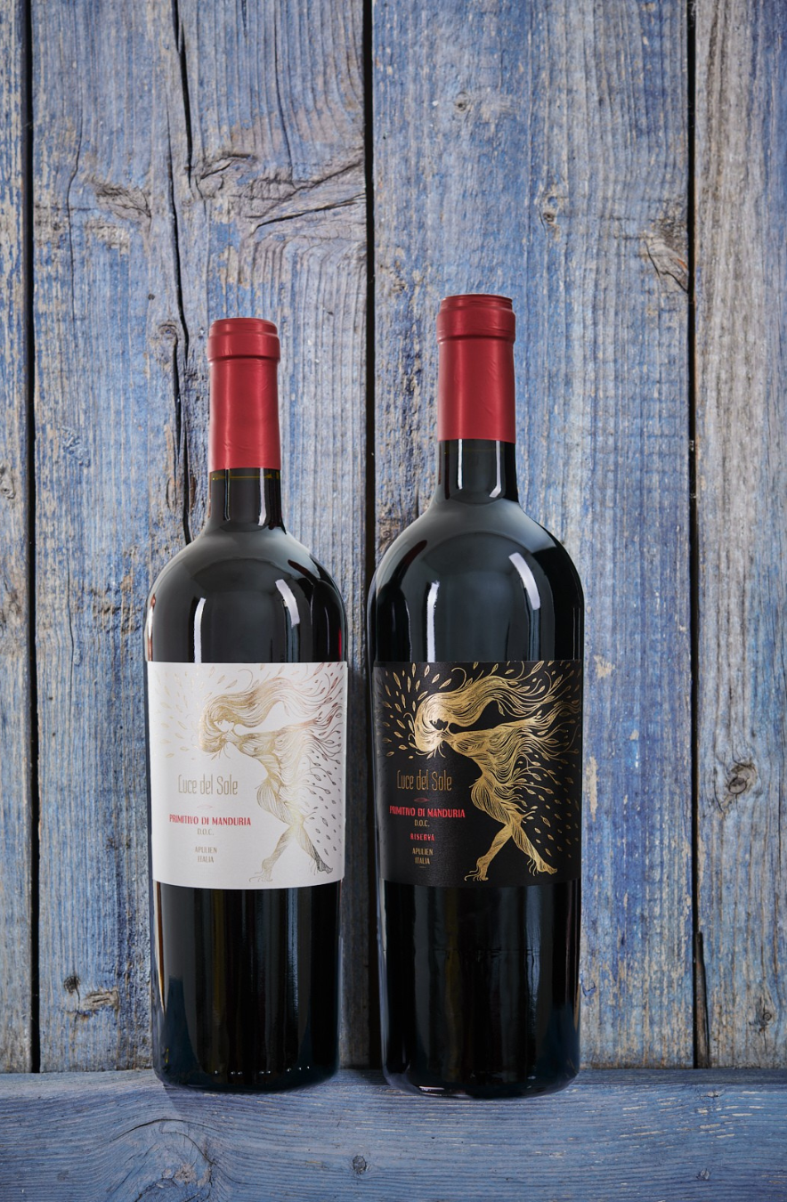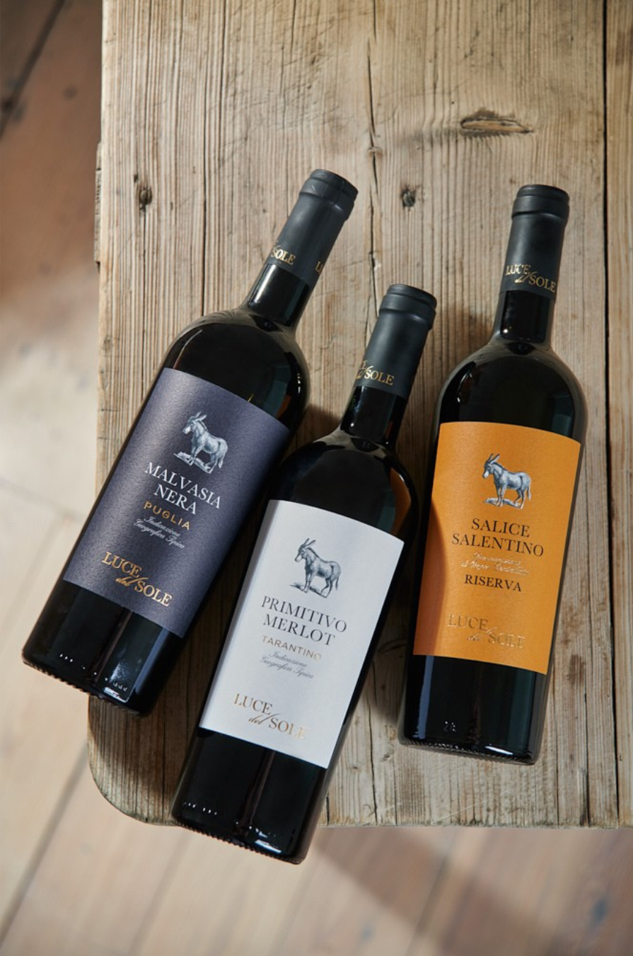 Die Weine der Serie „Luce del Sole“ stehen für Lust am Genuss, Lebensfreude und die unbeschwerte Leichtigkeit des Seins. Der Esel, das älteste Haustier Italiens und Symbol für den Süden, symbolisiert dabei die Geselligkeit, die Tänzerinnen den Übermut.