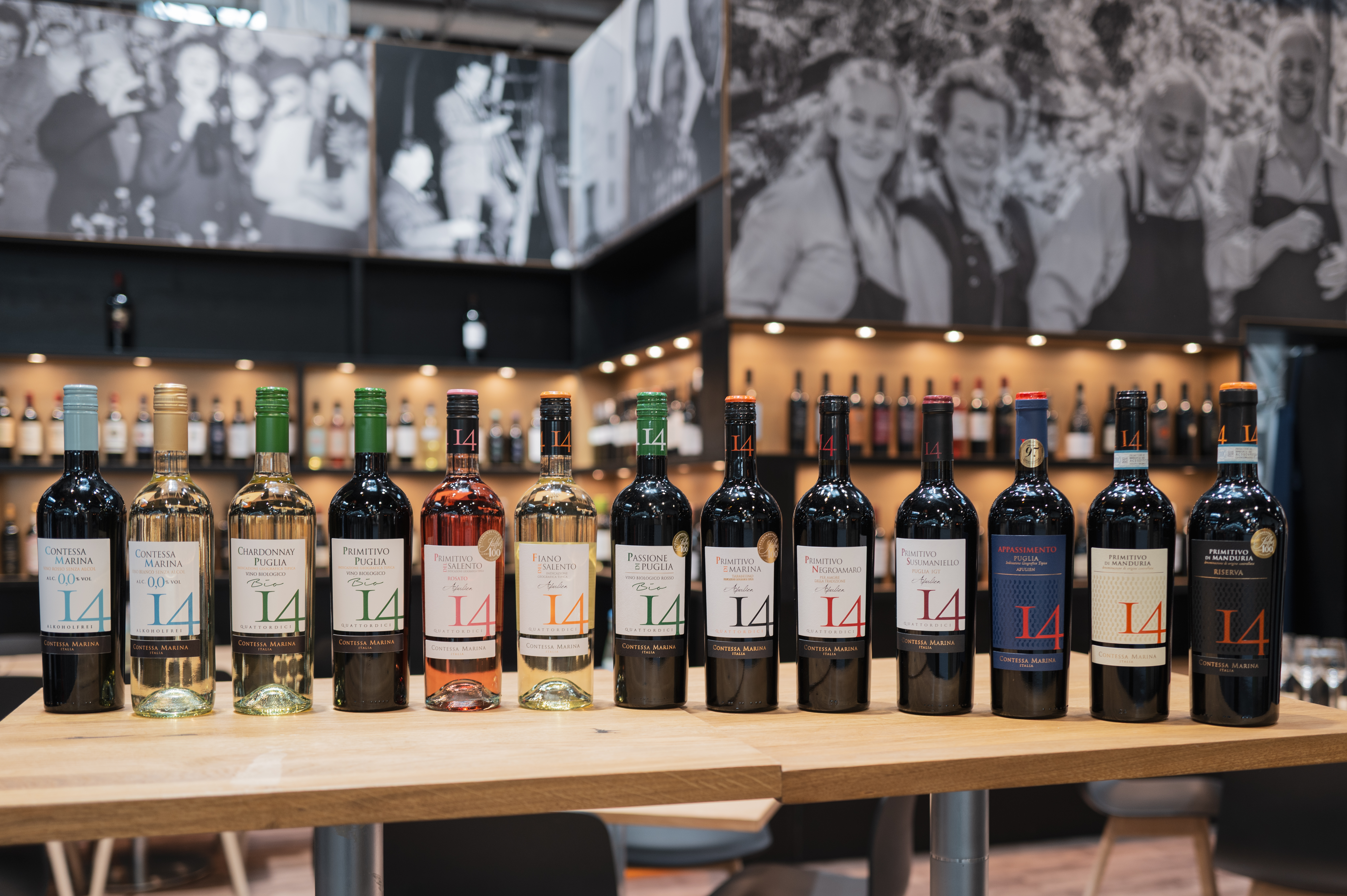 Quattordici steht aber auch für das moderne Apulien. Der gekonnte Umgang mit internationalen Rebsorten und modernen Anbau- und Produktionsverfahren zeigt sich eindrucksvoll im Rosato und den beiden neuen Bio-Weinen.